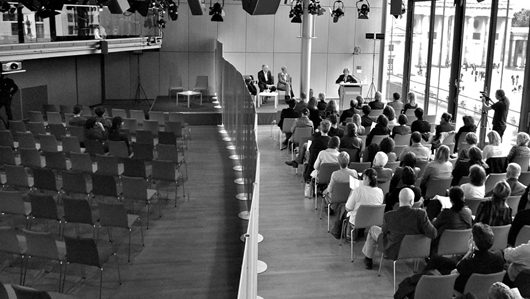 Santiago Sierra. ‘Público Segregado Según sus Ingresos Fueran Mayores o Menores a Mil Euros Brutos Durante un Simposium’, en la Kunstakademie, Instituto Cervantes Berlín, Alemania. Mayo de 2010