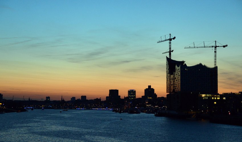 ARCHIV – Die Baustelle der Elbphilharmonie vor der Skyline von Hamburg ist am 13.08.2012 im Hafen in Hamburg vor dem gefärbten Abendhimmel zu sehen. Seit Jahren streiten sich die Stadt und der Baukonzern Hochtief um immer höhere Kosten und Zeitverschiebungen auf Hamburgs berühmtester Baustelle. Bis Weihnachten will nun Bürgermeister Scholz eine Entscheidung verkünden,ob die Hansestadt die Elbphilharmonie gemeinsam mit Hochtief zu Ende baut. Foto: Daniel Reinhardt/dpa (zu dpa-Korr «Entscheidung zur Elbphilharmonie: Olaf Scholz in der Zwickmühle» vom 14.12.2012) +++(c) dpa – Bildfunk+++
