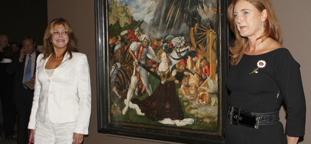 Carmen Thyssen y Francesca Thyssen en el museo Thyssen durante la inauguración de la exposición de otoño de 2007, "Durero y Cranach. Arte y humanismo en la Alemania del Renacimiento". Entre ellas, el cuadro "Martirio de Santa Catalina" de Lucas Cranach el Viejo /Hola